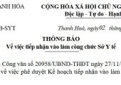 Thực hiện Công văn số 20958/UBND-THĐT ngày 27/11/2025 của UBND tỉnh Thanh Hóa về việc phê duyệt Kế hoạch tiếp nhận vào làm công chức Sở Y tế